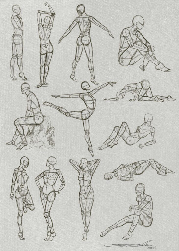 با مطالعۀ طراحی اسکلت شروع کنید تا بدانید بدن چگونه حرکت میکند و تعادل خود را حفظ میکند، سپس به سراغ عضلات و حرکات بروید. بررسی کنید که چگونه فرم عضله با حرکت شکل تغییر میکند. به یاد داشته باشید که هدف نهایی شما این است که بتوانید بدون هیچ مرجعی با تخیل خود طراحی کنید.